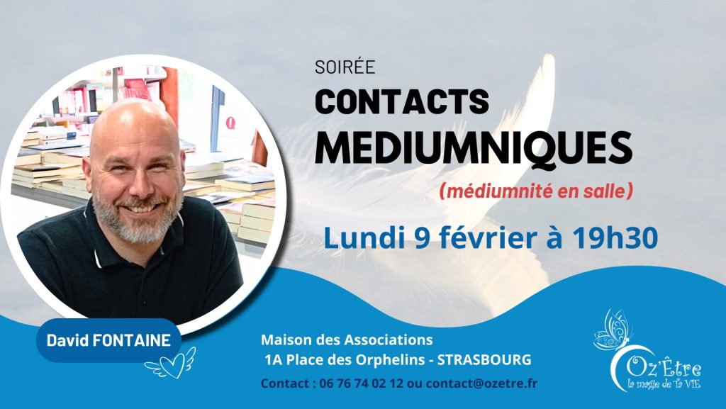 David Fontaine, médium, vient à Strasbourg depuis 2017 et est reconnu pour la précision de ses messages et la profondeur de son approche. Son retour en février sera une nouvelle opportunité de vivre une séance de médiumnité en salle, d’entrer en contact avec l’invisible et, peut-être, d’obtenir des réponses qui résonneront profondément en vous.
